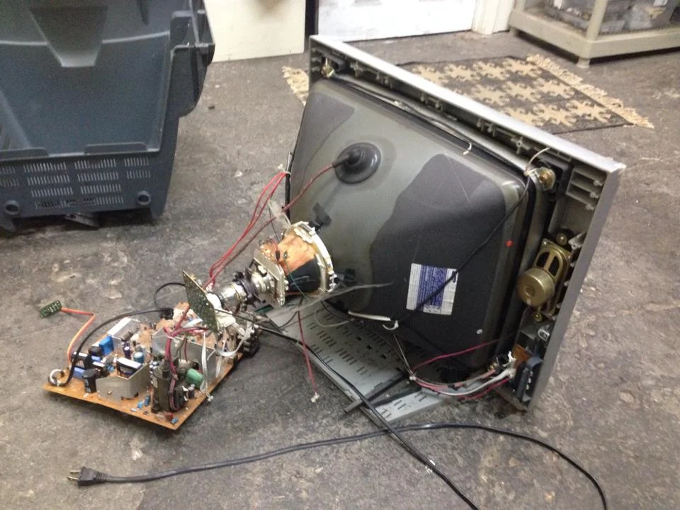 I love the cyclical process of destruction and creation that is critical to my work. It also gives me a lot of insight into how things are made. To tear open the TV, all i needed was a phillips head screwdriver. By contrast, to take apart the antique typewriter, i tried 4 different screwdrivers, and in the end i just had to bend the metal by hand until it broke to get the keys off. Had it not been rusty already, i don't even think that would have worked.