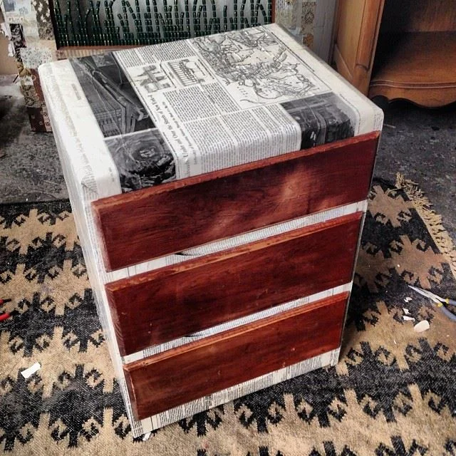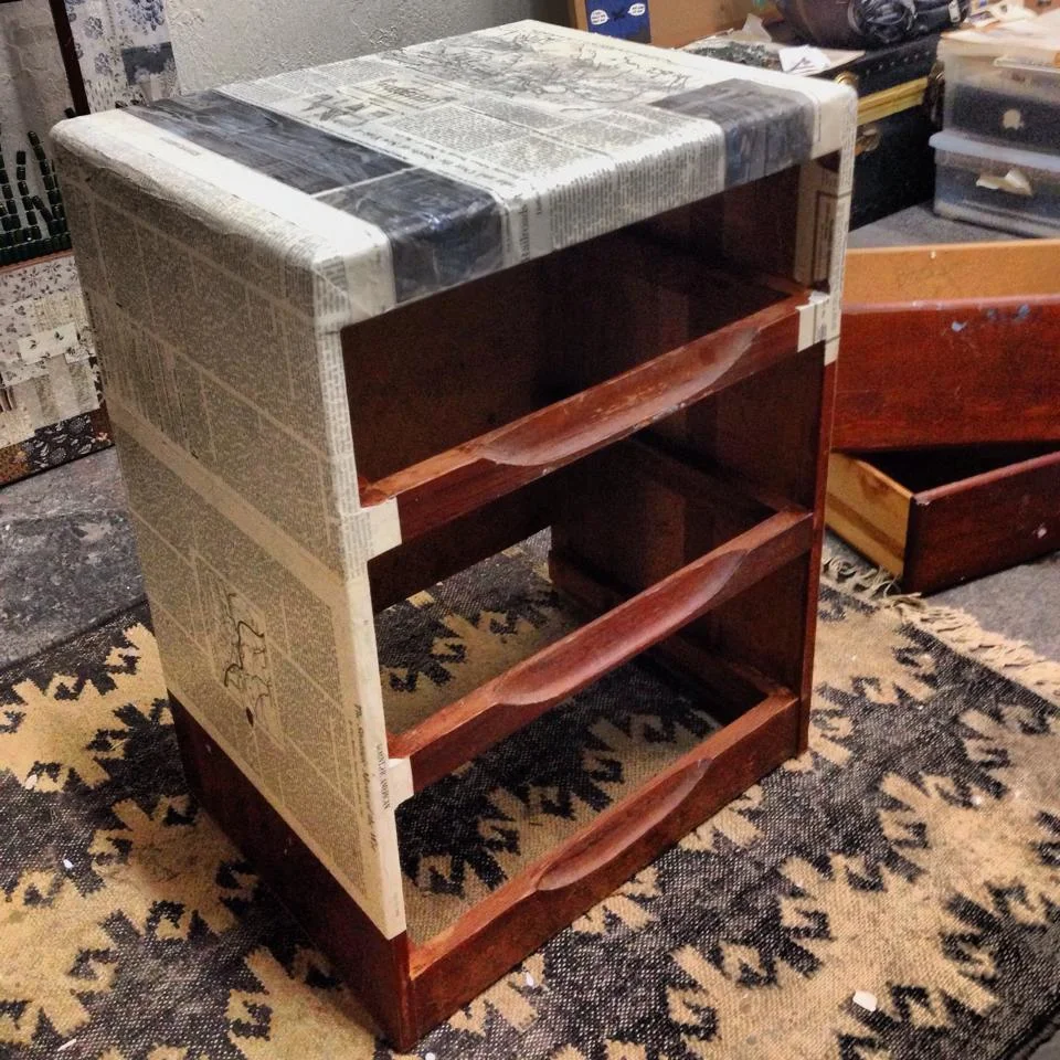I found an old set of wooden drawers at a thrift store that seemed ripe for refinishing.