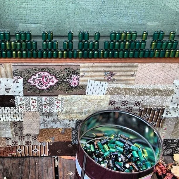I built the branches up using layers of antique newspaper and corrugated cardboard (for depth). The newspapers i used are several pages from 1915 issues of Scientific American. I like to use these antique papers both for aesthetic value (the phrases of text are fascinating) as well as historic authenticity. By historic authenticity, i mean that i incorporate as many authentic vintage or antique pieces as possible in my work to contribute to the 'time machine' overall concept i am attempting to express.